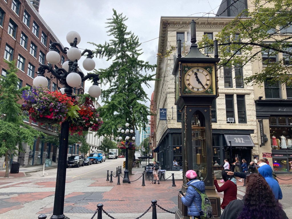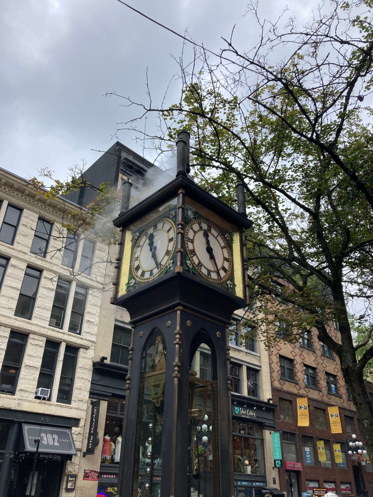 I headed downtown to see the Gastown steam clock (It’s the world’s first steam powered clock. It was developed in 1977 to cover a steam crate. It’s a pretty cool spectacle).