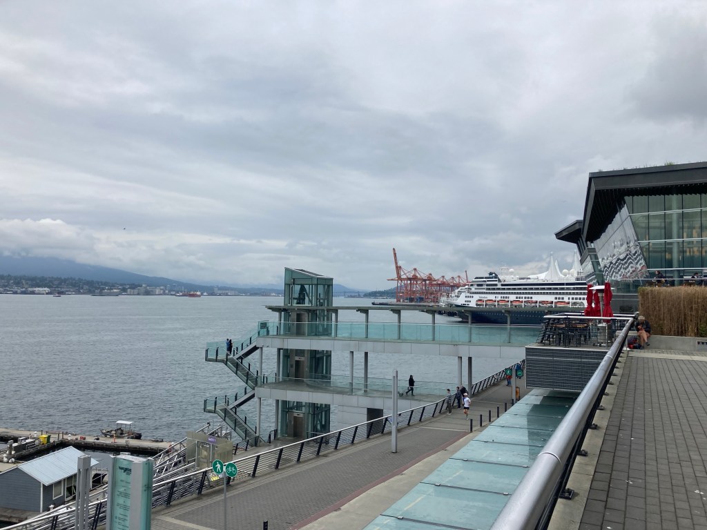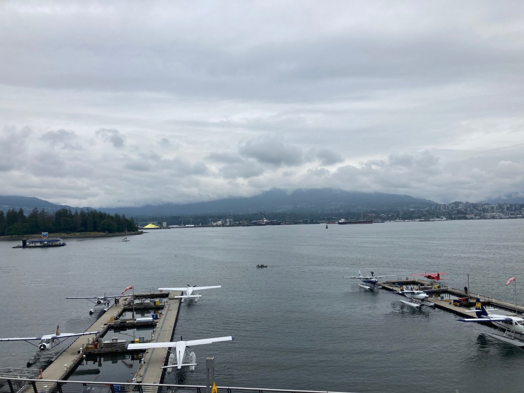 There was an airport on the water (Vancouver Harbour Flight Centre) that I could see from the viewing space (Vancouver Convention Centre), and I could also see a cruise ship in the distance as well, near Canada Place. I stood there and watched the planes take off and land for a bit.