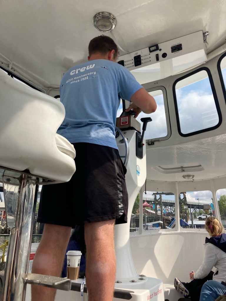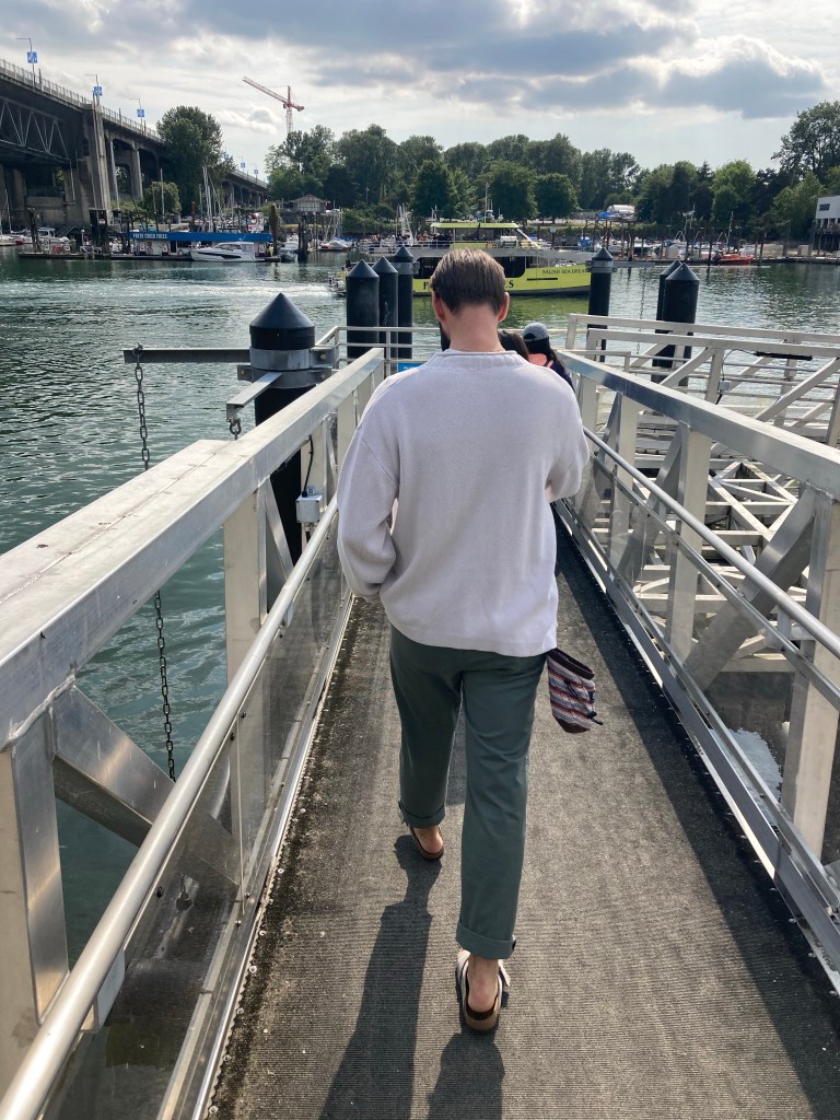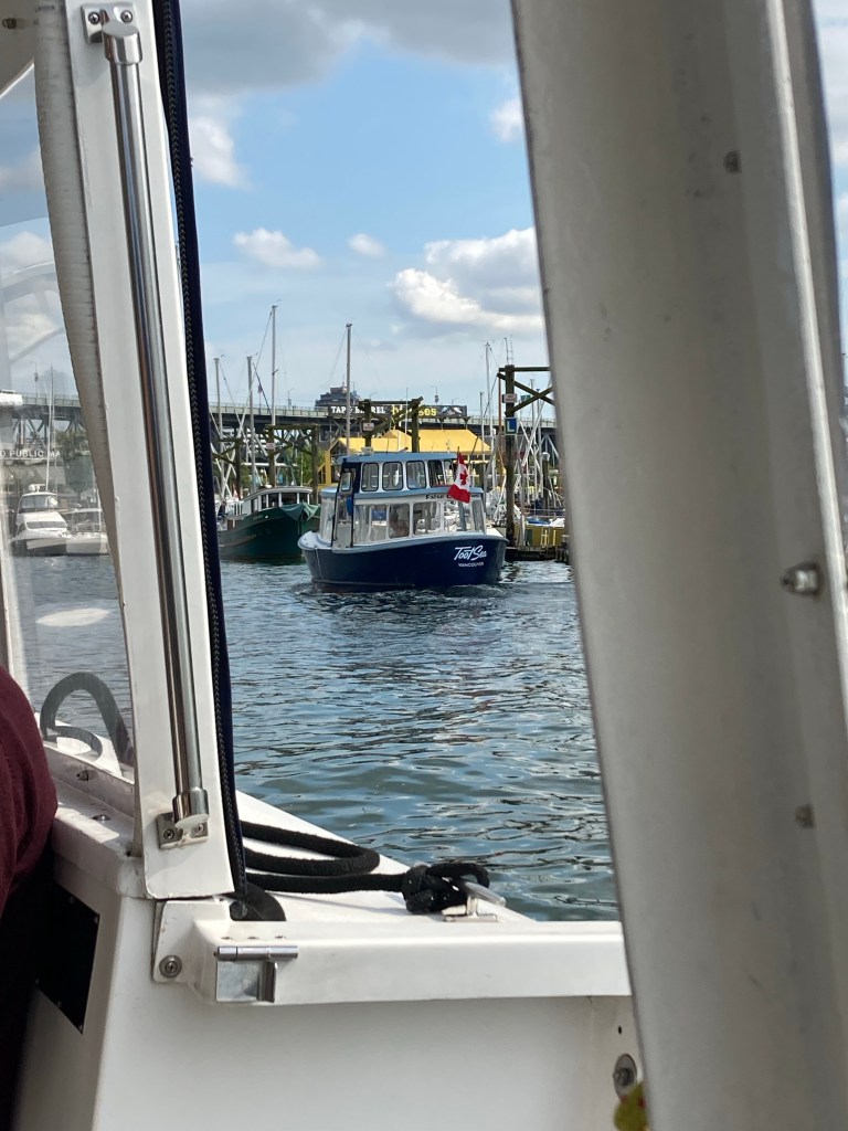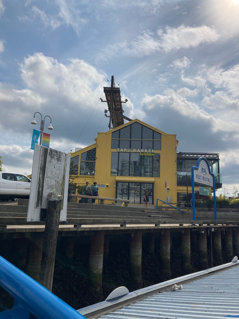 I saw a shipwrecked ship; it seemed real. Then, at about 16:30, I started walking down the first dock I saw to board a ferry to Granville Island.