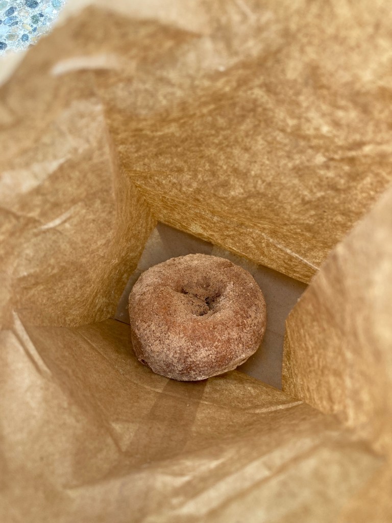 The doughnut shop only had about three options left, so I ordered a cinnamon doughnut, the most delicious looking option. The price was two something. I paid, didn’t tip, and continued on my way.