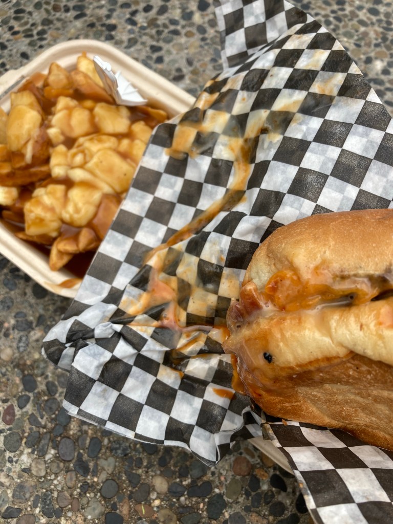 I walked around a bit and decided to eat at a place called “The Market Grill”. It took me about 10 minutes from ordering to get my food. I had ordered poutine and a maple syrup burger, or smth.