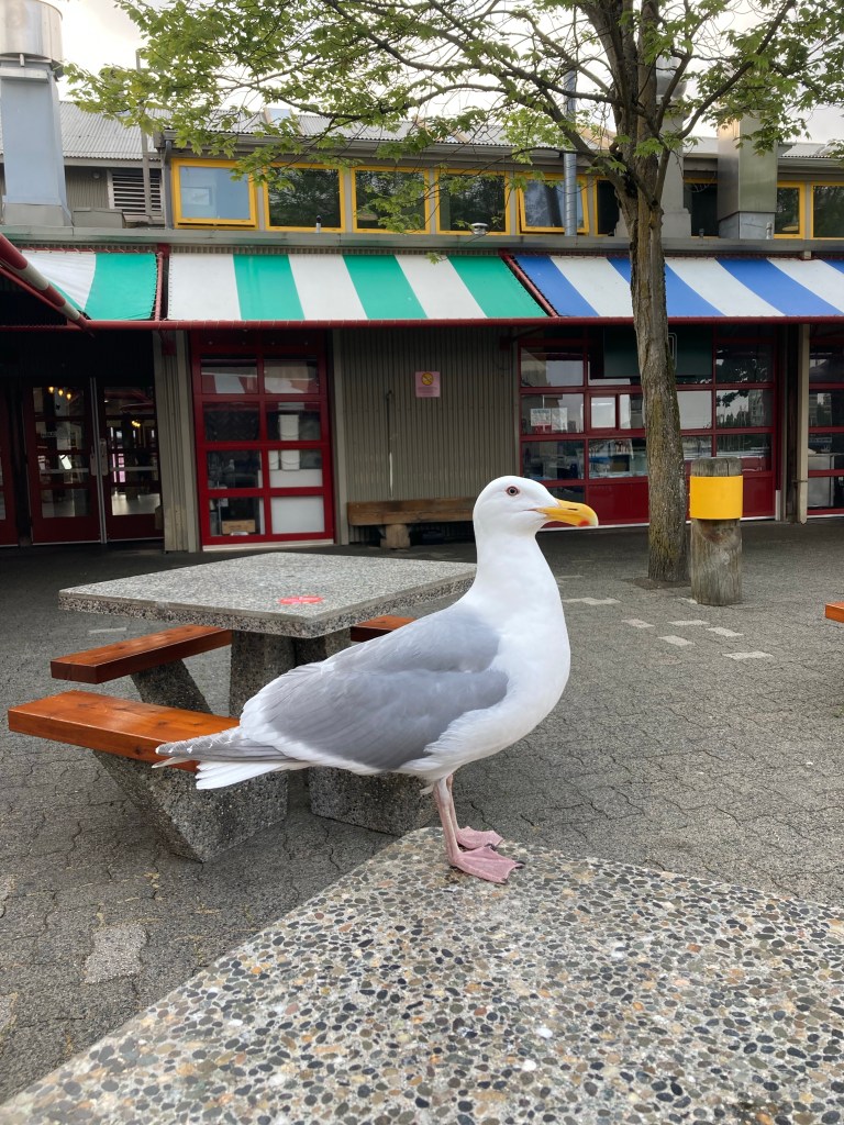 There was also a huge seagull walking around the tables. It finally landed on mine while I was on the phone, and looked me in my face. I shooed him away.