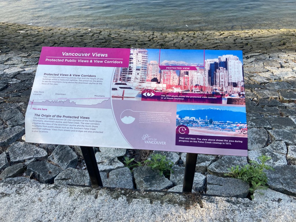 There were these nice homes situated by the water, with a nice view of the downtown skyline. That’s when I read a sign about Vancouver protected public views and view corridors.