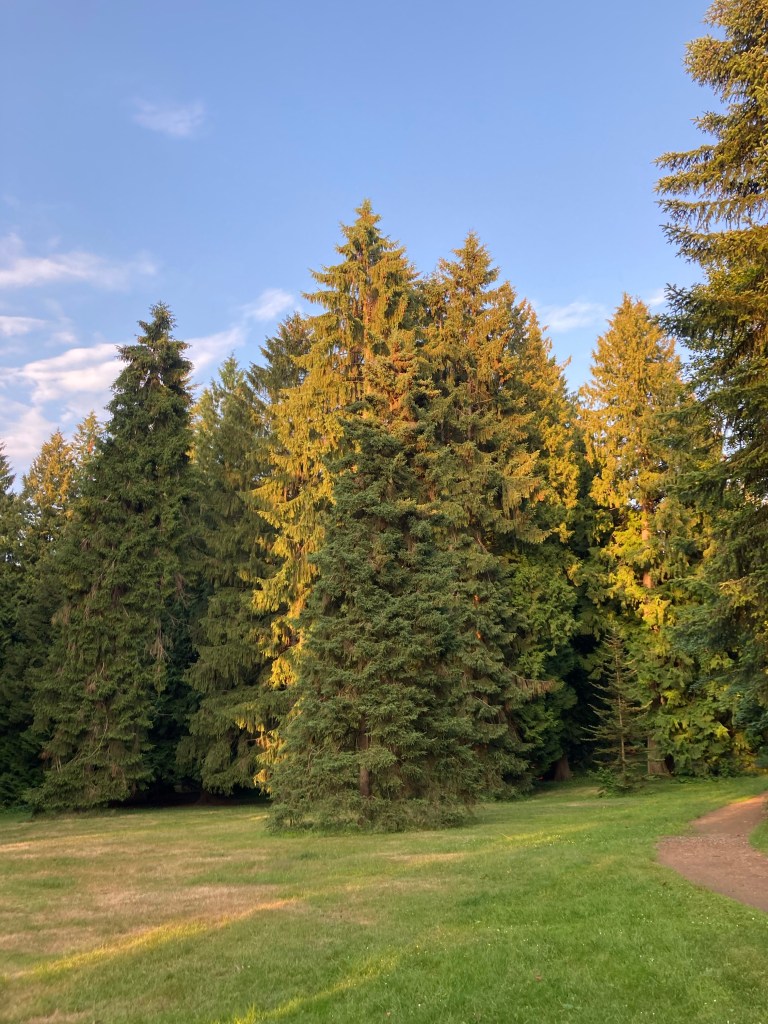 I arrived at the grounds at 20:24. There were a lot of meadows in the park and the light was hitting the trees right.