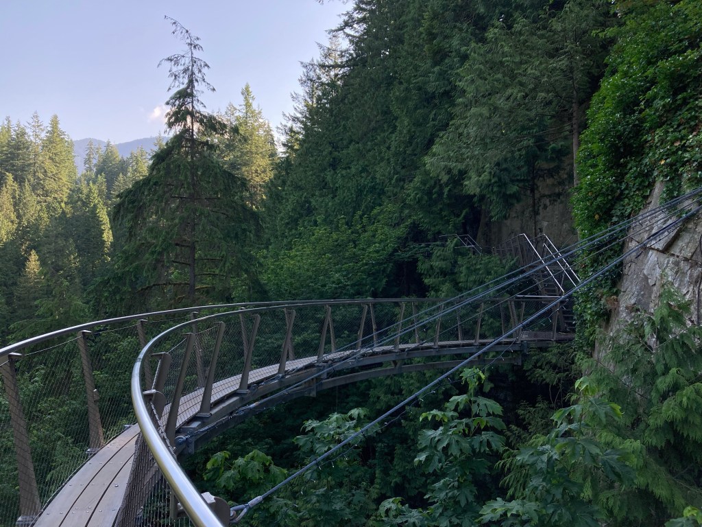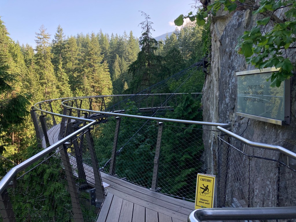 My bus was a bit delayed because there was a motorcycle crash downtown. But I made it on time. Once I got to Capilano, I went to the cliffwalk. No one was on it but me.