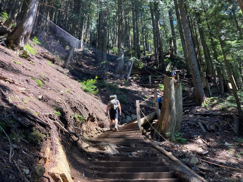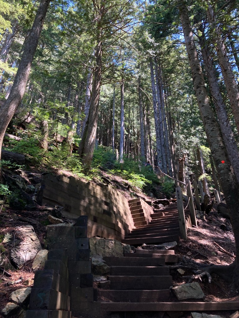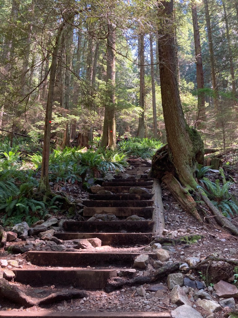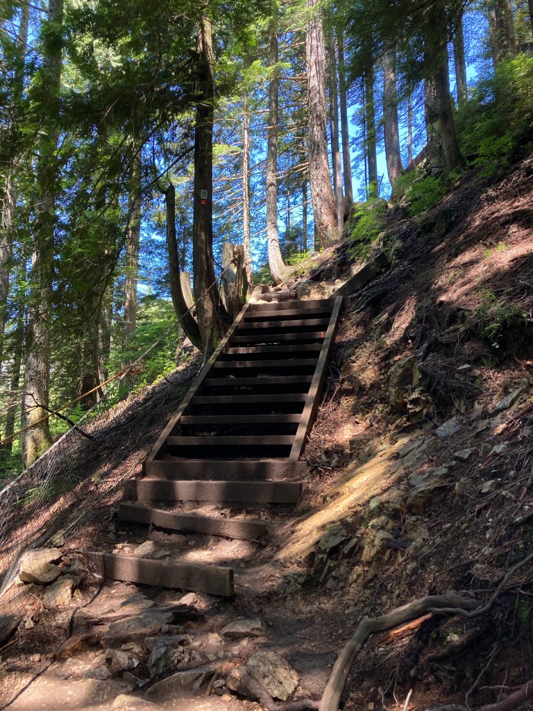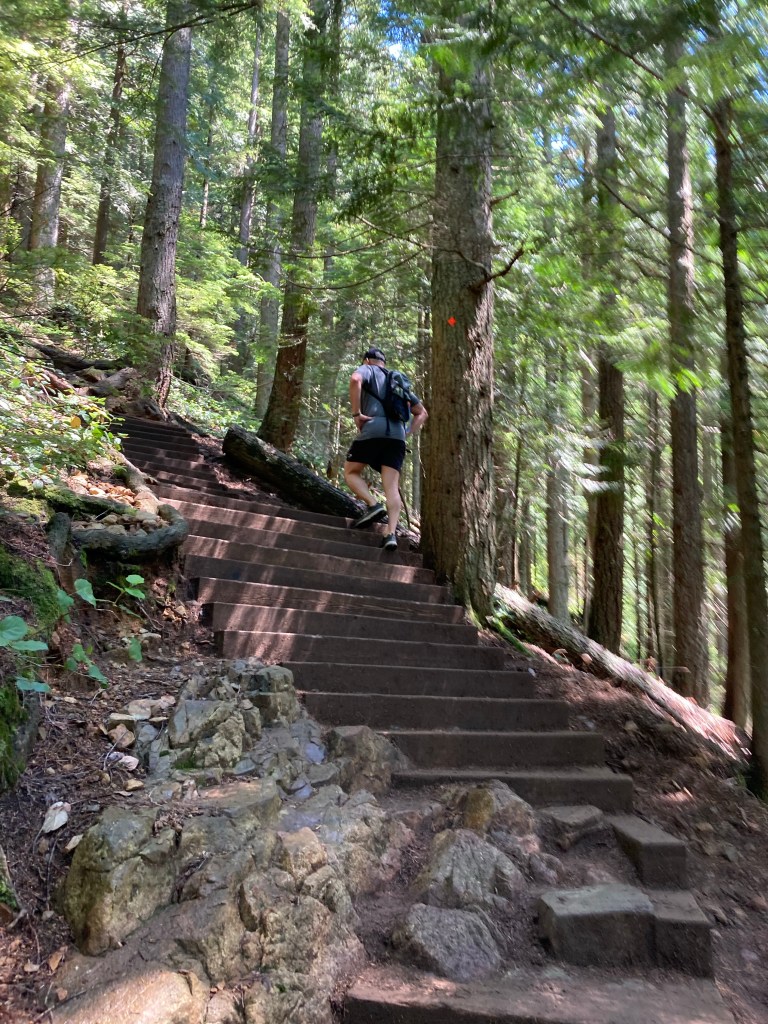Now the Grouse Grind. That is a hike. I see, and felt, why it is called “grind”. It is no walk in the park. It’s mostly stairs, for two and a half km up. It felt like the actual stairway to heaven.