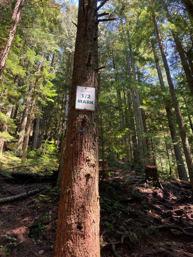 At 12:49, I reached the true ½ mark (aptly called “Grouse Grind Trail ½ MARK”).