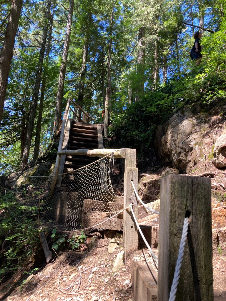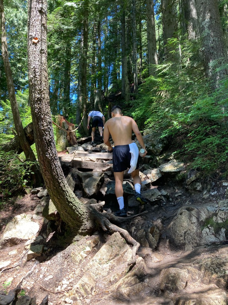 Okay, so this is the part where my judgement severely lapsed. See, I had researched the trail before; I was aware that it was difficult; I was aware that it was over 2,830 steps, and 2.5 km (1.55 miles) long. I was aware the ascent was 800 m (2,624 feet) above sea level (which Vancouver is at); but this hike was very difficult. I had never done anything like that before.