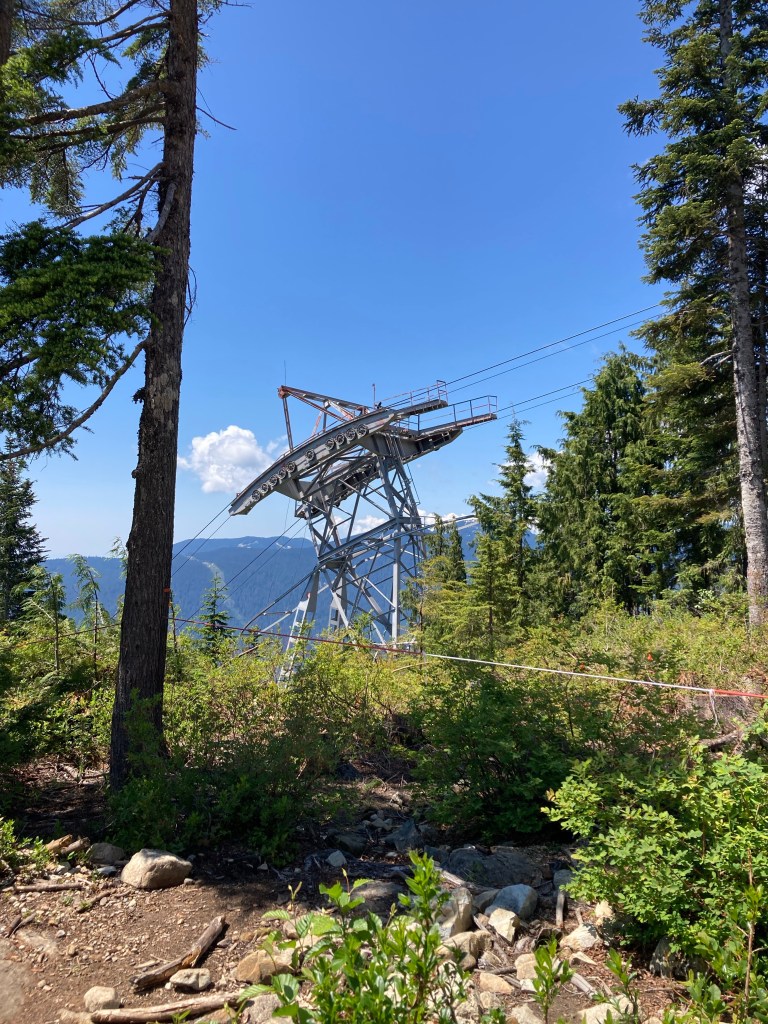 When I looked to my left I could see a cable car tower (the proper name is an “aerial lift pylon”), but no cable car. It stood boldly on the side of the mountain. I began walking over towards that area.