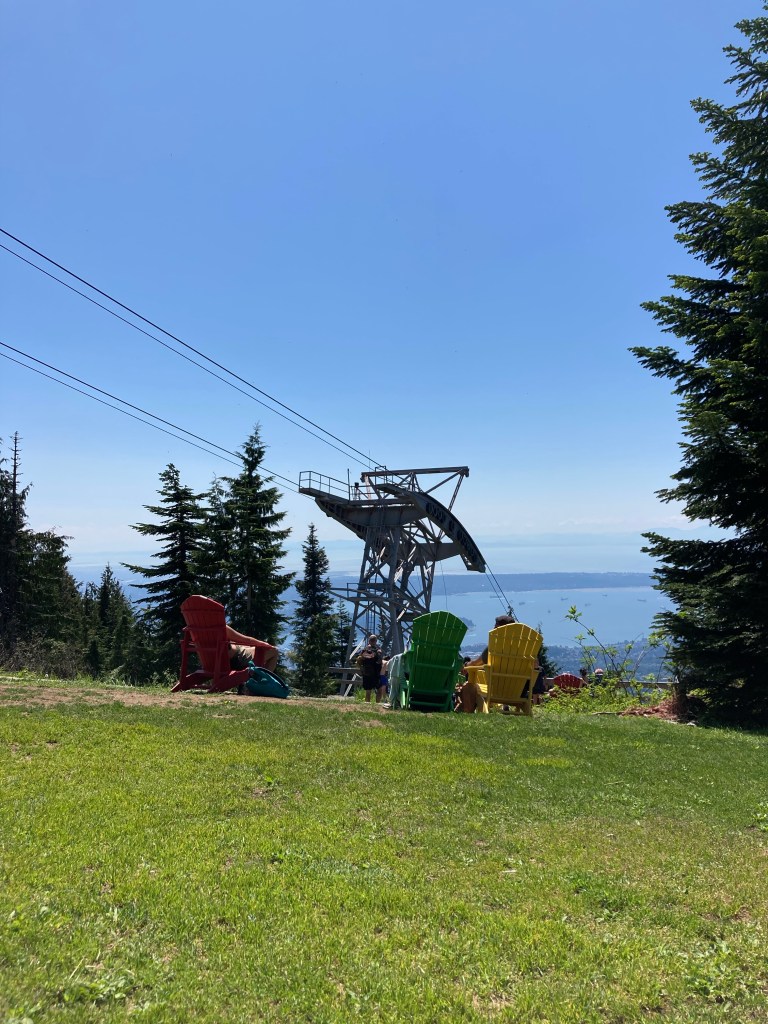 I arrived at a small grassy area called “Georgia Straight Lookout”. There were viewing chairs set up to overlook the mountains and city below. I rested here for a bit.