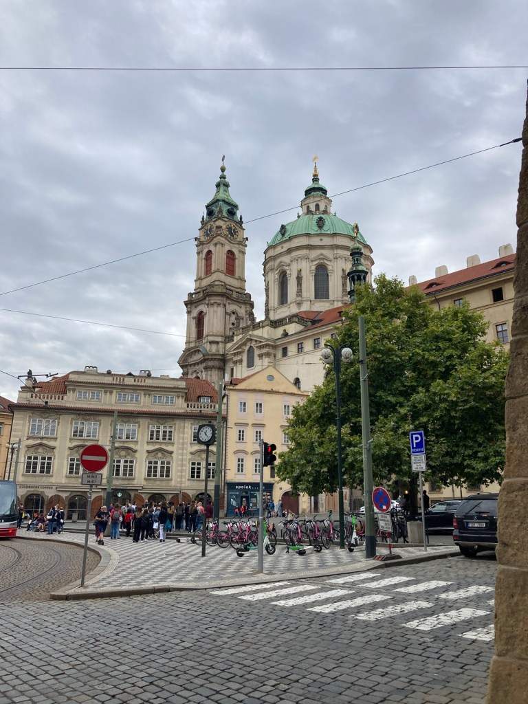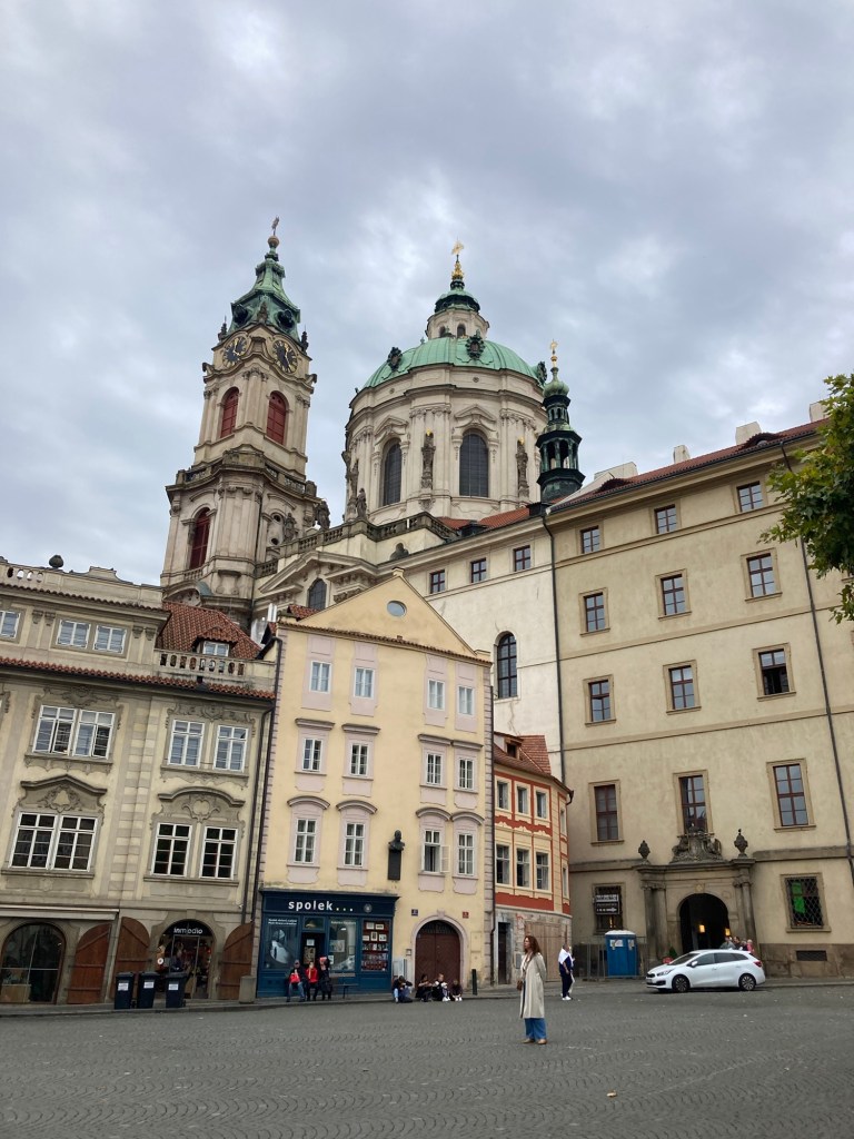 This was Saint Nicholas Church (Kostel svatého mikuláše) in Prague. The top was also very tall.