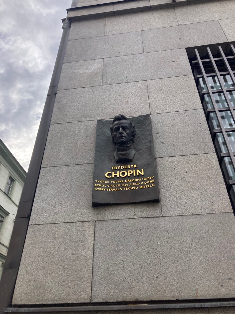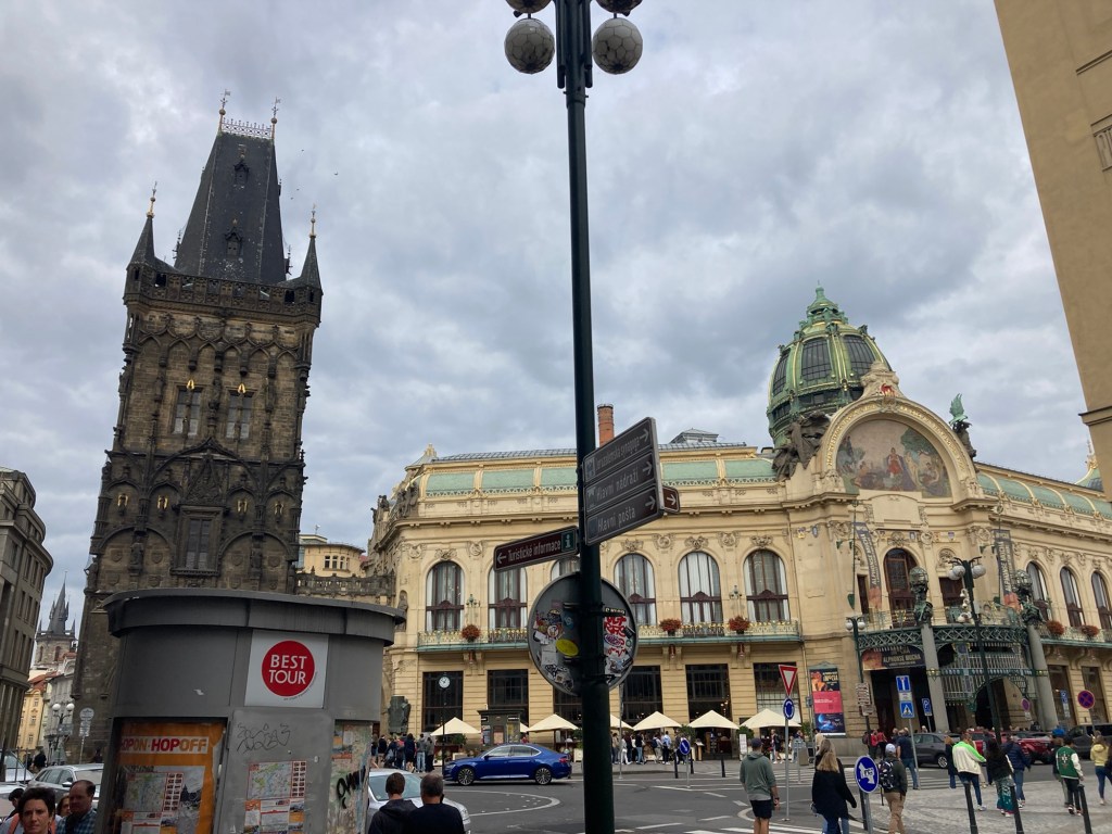 I continued walking until I came across a plague of Fredrick Chopin hanging on a building corner wall (apparently, he used to live in this building, whose space is now occupied by a bank). Then, there was the tower; the Tower of Powder, along with the Obecní dům (the municipal house, which houses a famous concert venue).