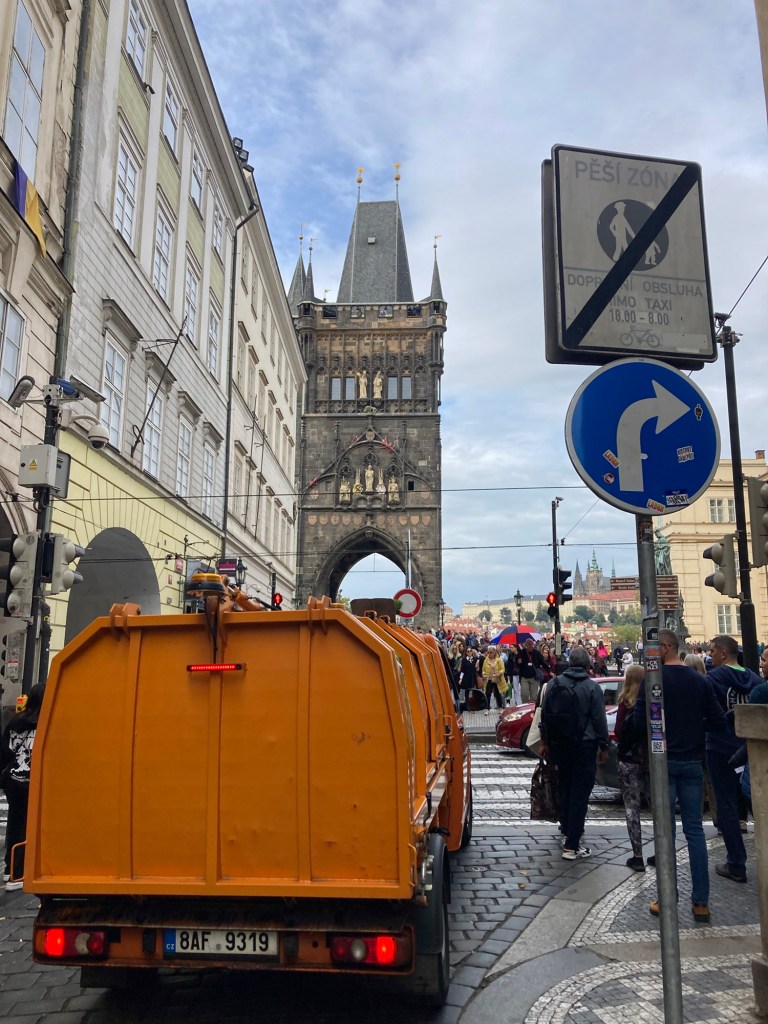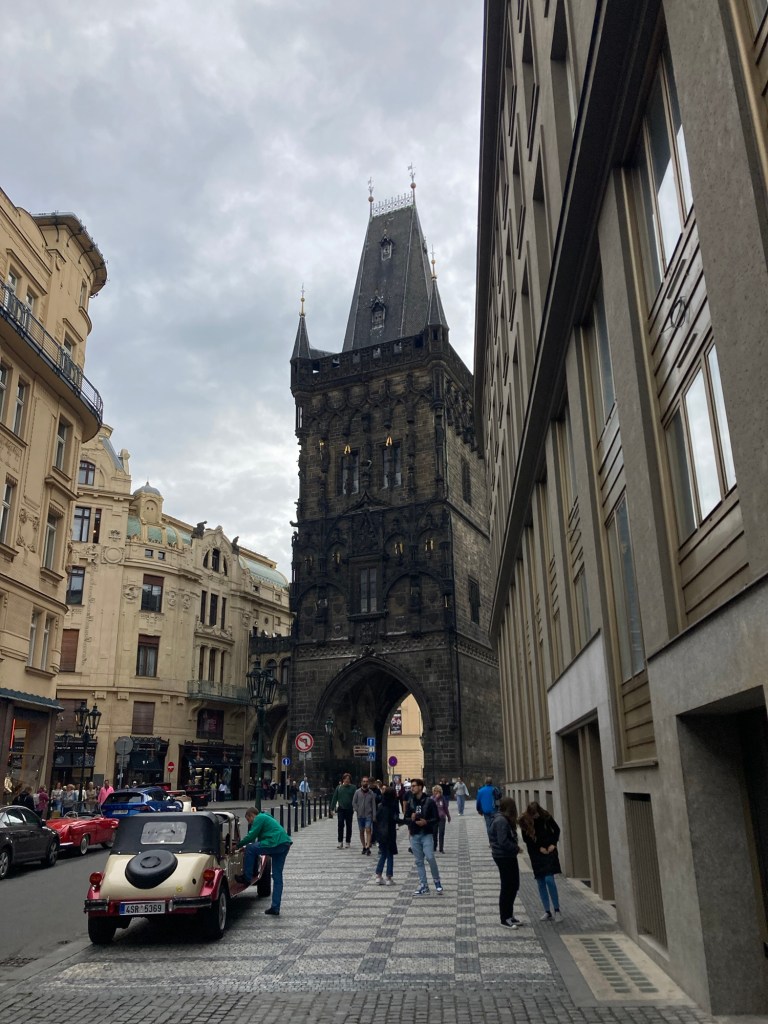 This day, I showered and left my hostel at around 09:14 in the morning. It was my first time seeing Czech in the daylight. This day in Prague, it was particularly warm. It was 16 degrees Celsius (61°F). The high that day was 25 degrees Celsius (77°F). I decided to walk down to the Powder Gate Tower (Prašná brána) since that was what I desired to see most. It was a 34 minute walk according to the map on my phone.