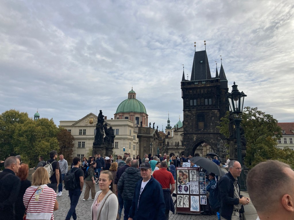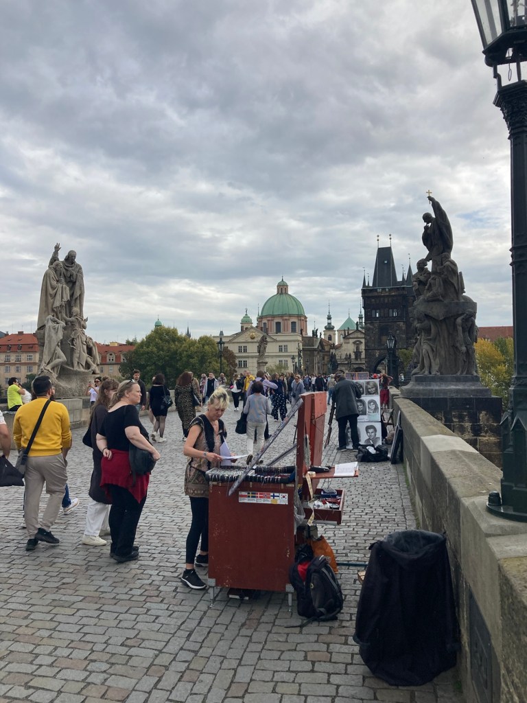 Upon approaching the gate to the bridge, one could see Prague Castle. There were some black men dressed up as sailors, holding what seemed like newspapers, but masqueraded as advertising for the boating company they worked for. This truly made them characters. They stood out among the crowds not only for the colour of skin (which honestly, wasn’t much darker than mine), but for the ridiculous nature of their nearly pure white outfits.