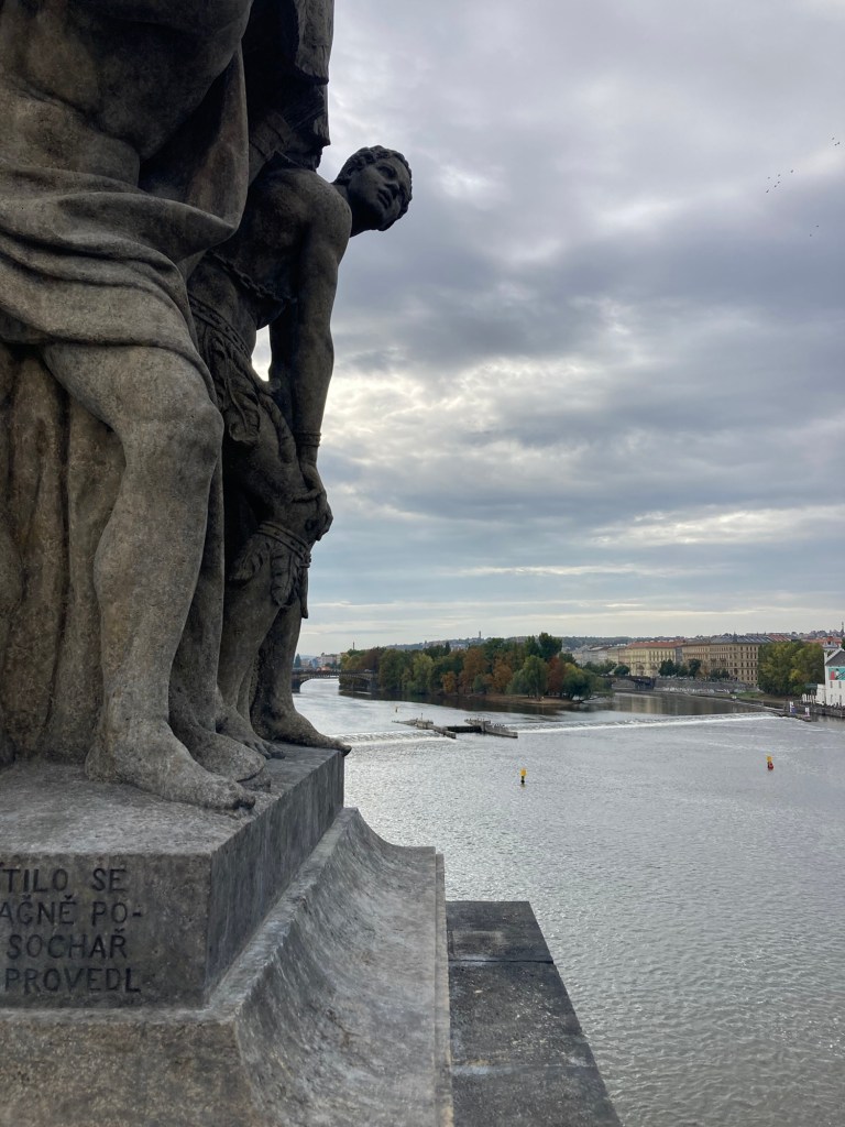 There’s many superstitions regarding many of the statues on the bridge, who represent saints and historical figures. The most well-regarded one is the story of St. John of Nepomuk, who is said to have drowned in the river beneath the bridge; the River Vltava.